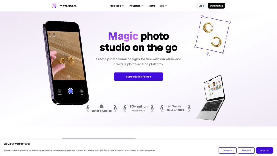 Need professional photo editing? Photoroom's all-in-one platform makes it easy to remove backgrounds, retouch images, and more.