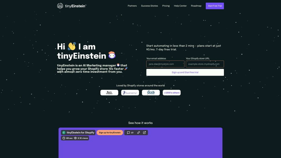 Tiny Einstein is an AI-powered marketing manager that helps Shopify store owners automate key marketing activities with almost zero time investment. Increase sales and revenue while you sleep with done-for-you AI email marketing. Start automating in less than 2 minutes.