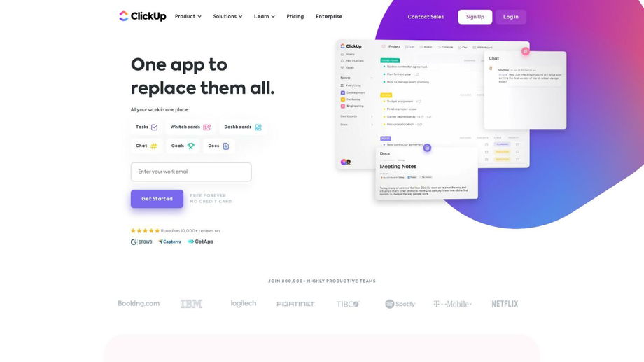 - All-In-One Project Management: Tasks, Docs, Chat, Goals, And More In A Single App.