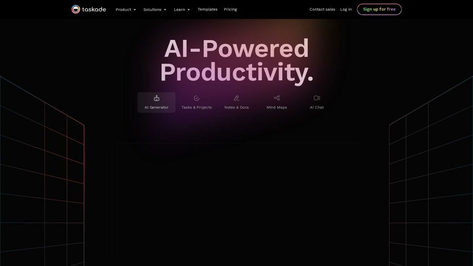 Taskade is an AI-powered productivity platform that combines tasks, notes, mind maps, and chat, all in one workspace. With Taskade, you can automate tasks, generate workflows, collaborate with AI, and supercharge your team's productivity.