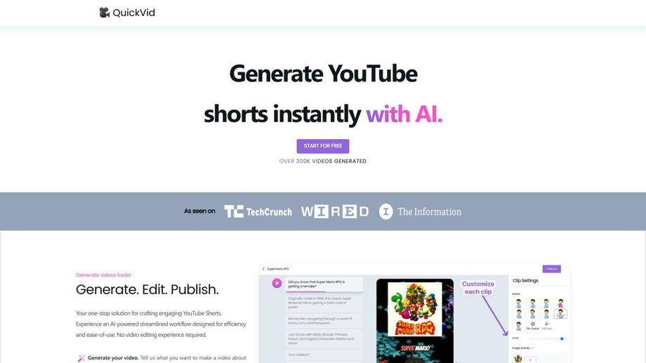 4. Content Creation: QuickVid offers a one-stop solution for crafting YouTube Shorts, making it a convenient tool for content creators who need to generate videos quickly without extensive video editing experience.