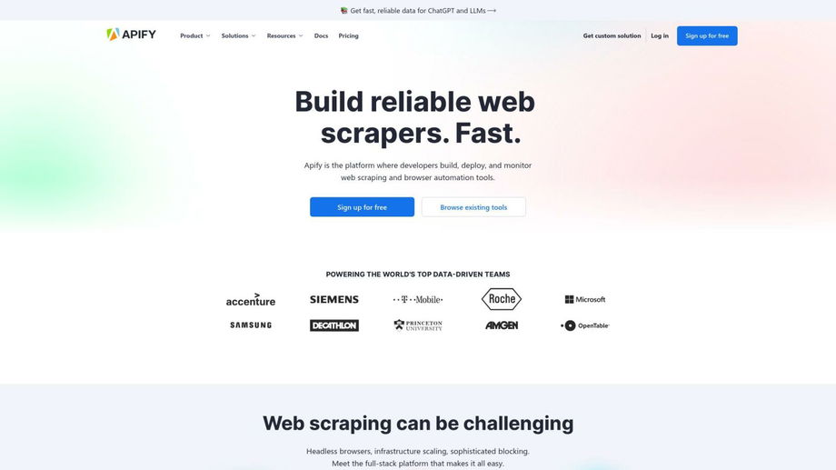 Apify is the platform where developers can build, deploy, and monitor web scraping and browser automation tools. Get fast, reliable data for ChatGPT and LLMs.