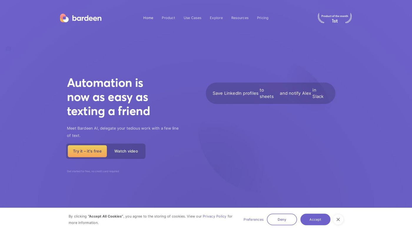 Bardeen AI automates tedious tasks with just a few lines of text. Delegate your workload and save time.