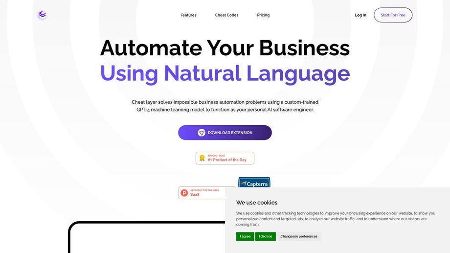 Cheatlayer is an AI-powered software that automates business processes using natural language. It uses a custom-trained GPT-4 machine learning model to create conversations that build end-to-end automations.