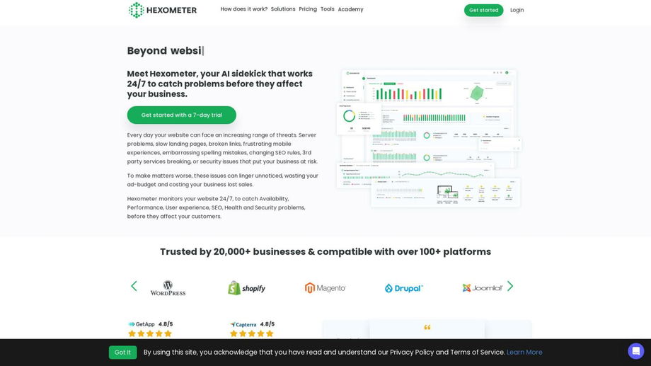 Hexometer is an AI-powered website monitoring tool that detects and fixes issues before they impact your business.